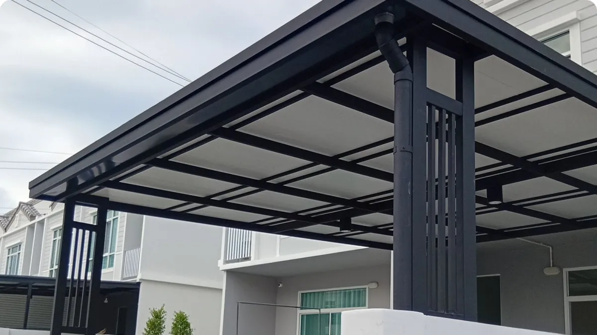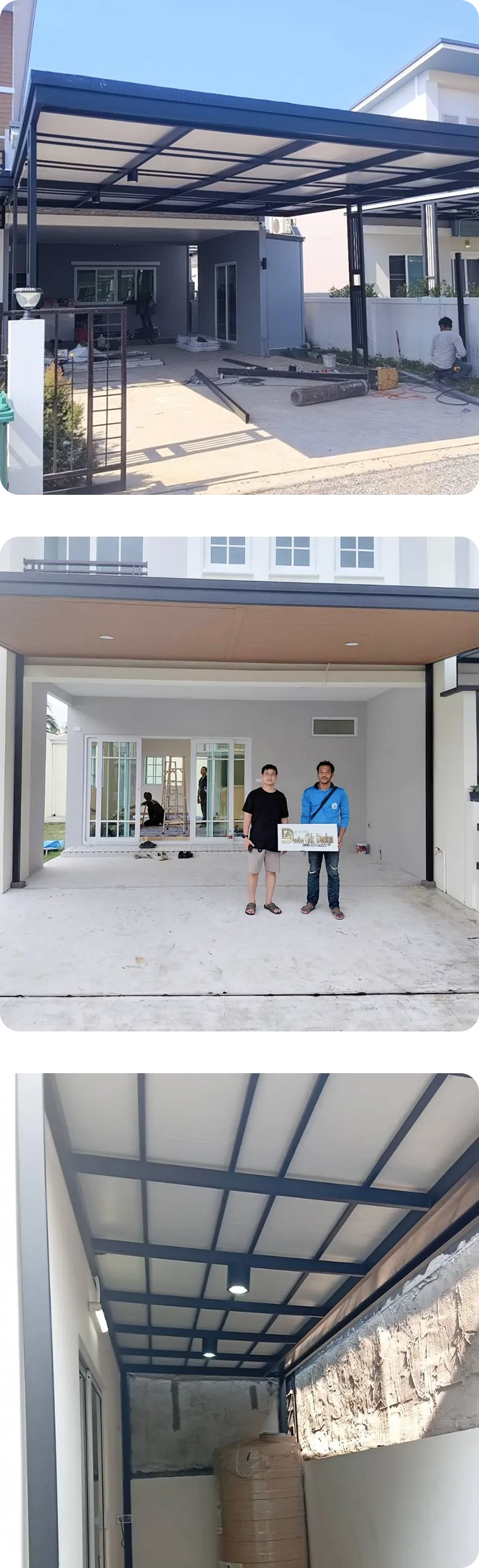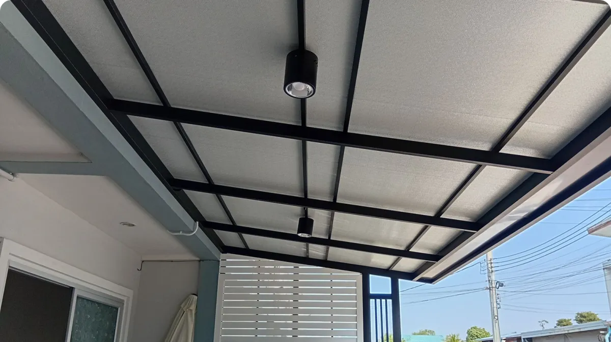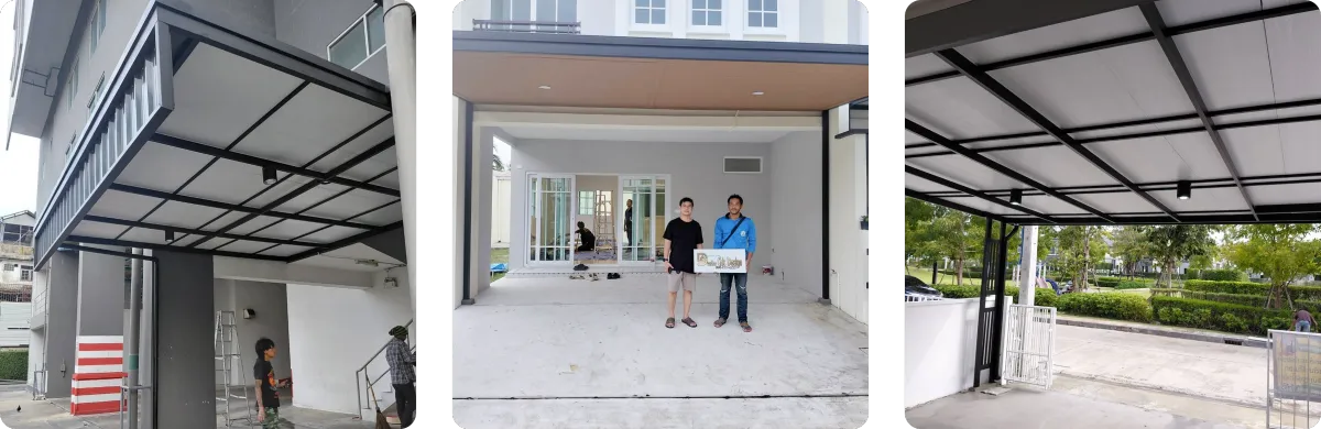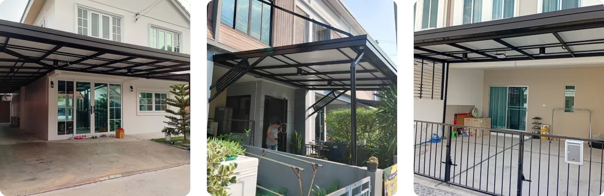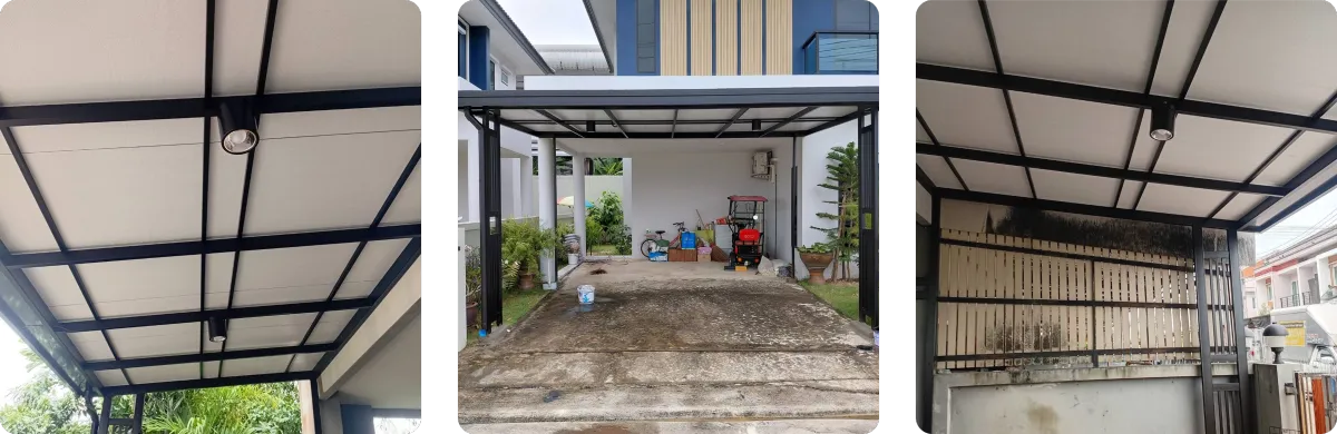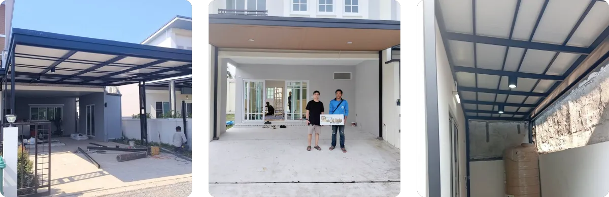 (Self-Standing) โดยไม่ยึดติดกับตัวบ้านเดิม วิธีนี้จะช่วยป้องกันปัญหาโครงสร้างหลังคาดึงรั้งจนผนังบ้านร้าวเมื่อมีการทรุดตัวของดิน