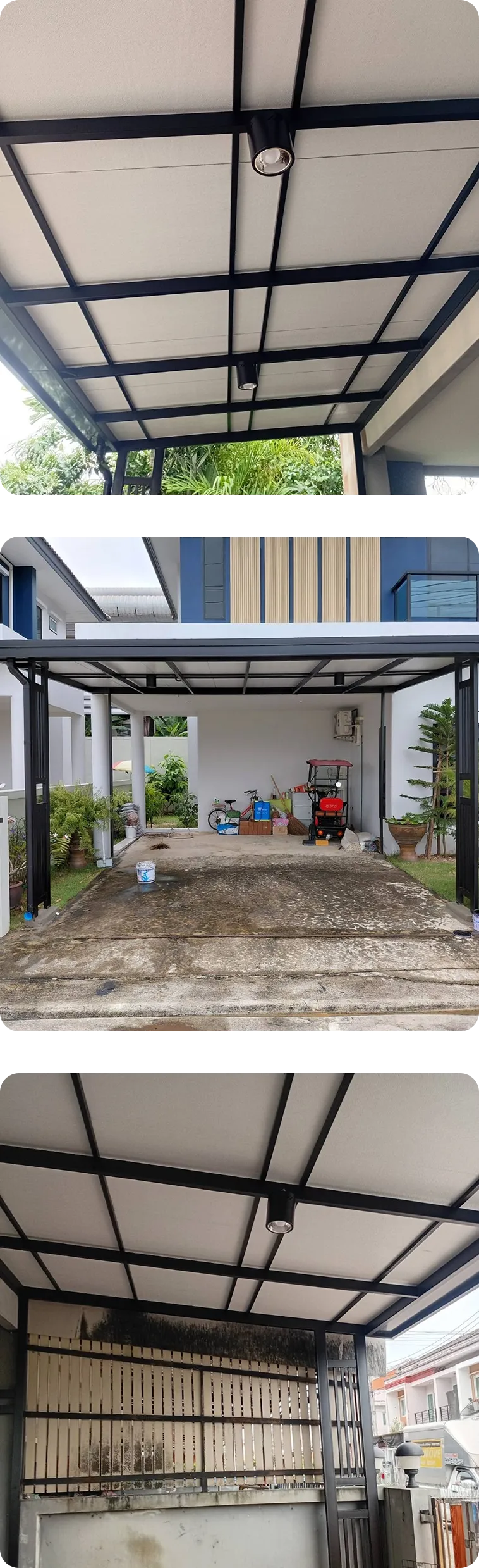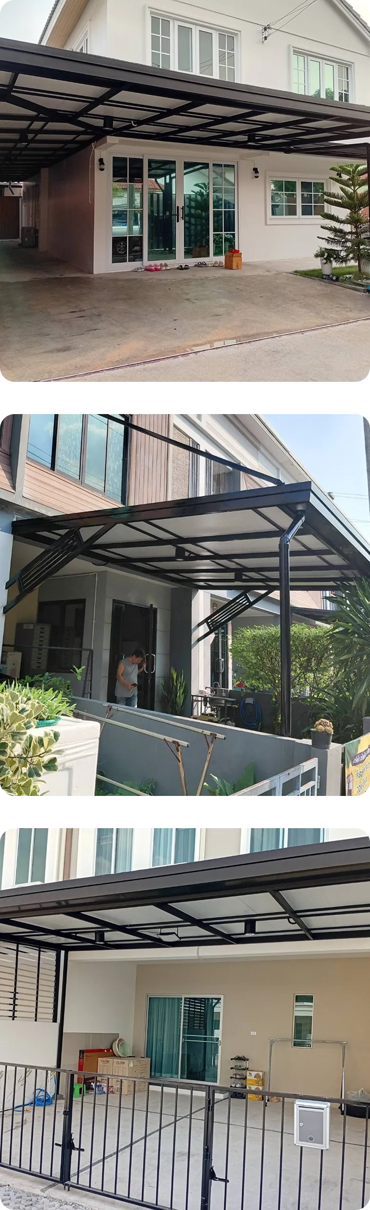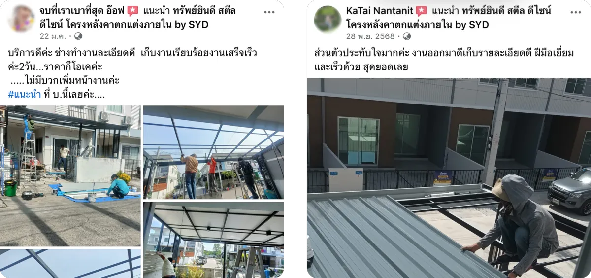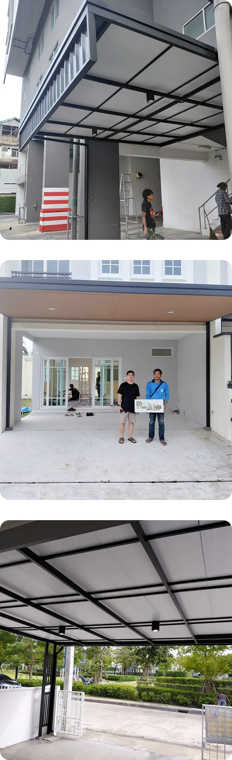 (Self-Standing) โดยไม่ยึดติดกับตัวบ้านเดิม วิธีนี้จะช่วยป้องกันปัญหาโครงสร้างหลังคาดึงรั้งจนผนังบ้านร้าวเมื่อมีการทรุดตัวของดิน