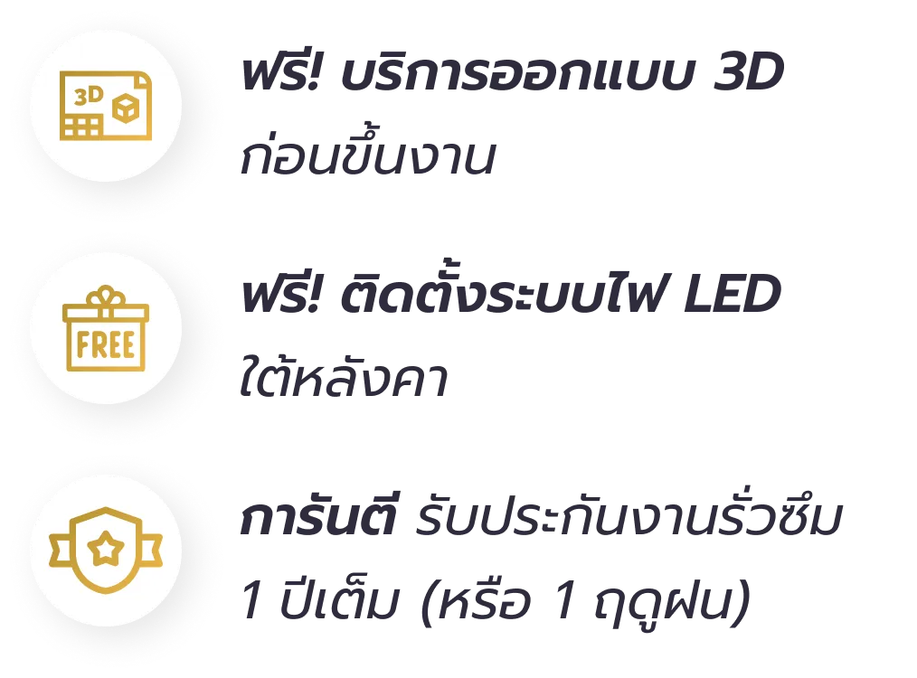 เรารับประกันงานรั่วซึมให้ 1 ปีเต็ม หรือ 1 ฤดูฝน หากพบปัญหา ทีมช่างจะเข้าไปดูแลแก้ไขให้ทันทีโดยไม่มีค่าใช้จ่าย